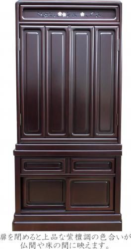 仏壇 唐木仏壇 出須弥(でしゅみ) 経机 座布団 仏具一式セット 紫檀調 螺鈿仕立 仏間にも床置きにも 配達設置無料