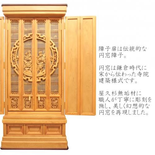 仏壇 唐木 仏具 セット 禅 (ぜん) 黒檀 40-16 高120cm 幅55cm 奥50cm 板円窓ブローチ障子 日本製 国産 伝統型 仏間 和風 和室 床の間 一式セット 経机 座布団