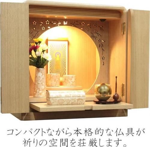 ミニ仏壇 仏具セット モダン仏壇 メモリア 14号 タモ おしゃれ コンパクト 小型 LEDライト 桜象嵌 高43cm × 幅37cm × 奥31cm 全宗派対応 仏具一式セット