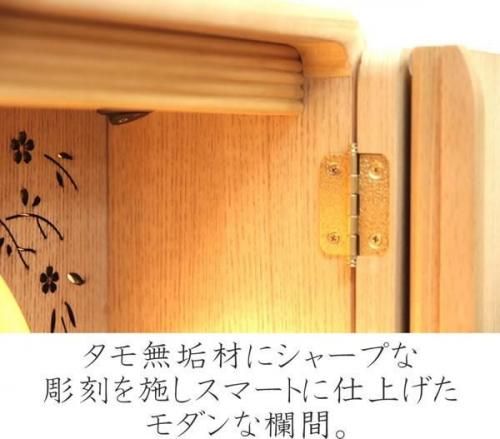 ミニ仏壇 モダン仏壇 シェリー 16号 ナチュラル色 桜透かし彫り ツインLEDライト 日本製 旭川モダン 高48cm × 幅45cm × 奥32cm 全宗派対応