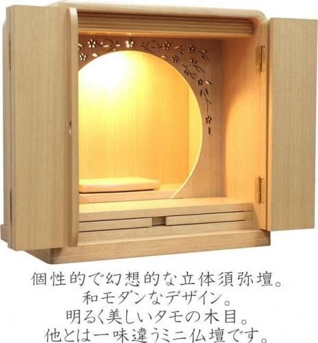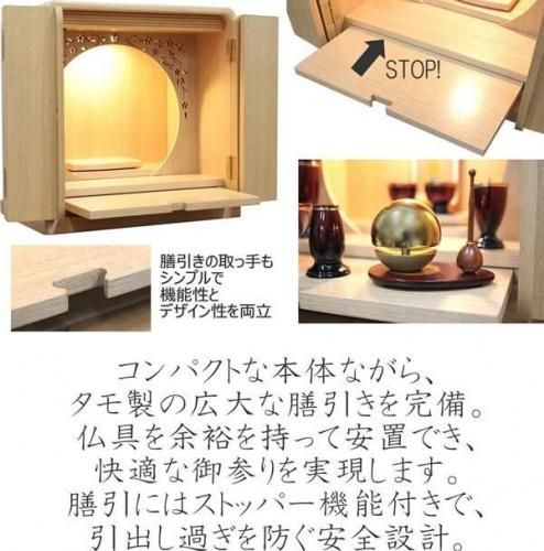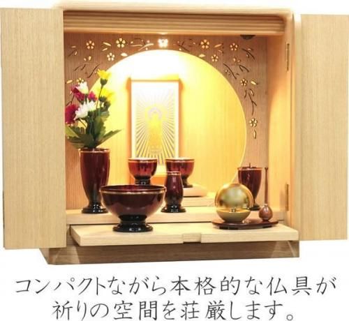 ミニ仏壇 仏具セット モダン仏壇 メモリア 14号 タモ おしゃれ コンパクト 小型 LEDライト 桜象嵌 高43cm × 幅37cm × 奥31cm 全宗派対応 仏具一式セット