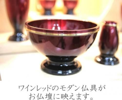 お仏壇を買うときに困るのが仏具。何が必要かわからない、大きさが合うかどうか不安、、、、さまざまな疑問や不安を感じることも多いはず。そこで、お飾りに必要な仏具を全てセットしてお届け。届いたその日からお参りいただくことができます。知識豊富な専門家がお仏壇にピッタリの仏具をコーディネート。仏具は高岡製の高級六具足。ワインレッドの艶やかな輝きは高級感に溢れています。おりんはGood Design賞受賞のモダンりん「たまゆらりん」。コロンと丸い可愛いフォルム、たたくとゆらゆらと揺れながら美しい音を奏でる姿に癒されること間違い無しの大人気おりんです。