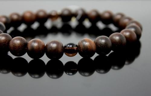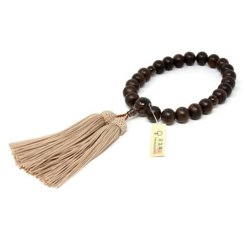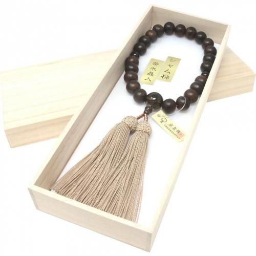 数珠 日本製 国産 男性用 念珠 片手 シャム柿 茶水晶 22珠 正絹 頭付房 全宗派対応 数珠袋付 本絹