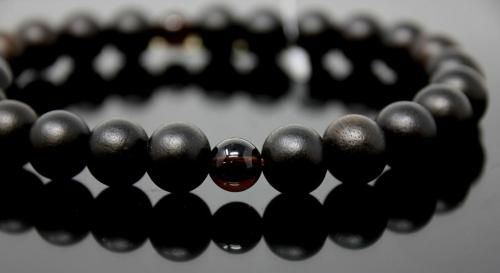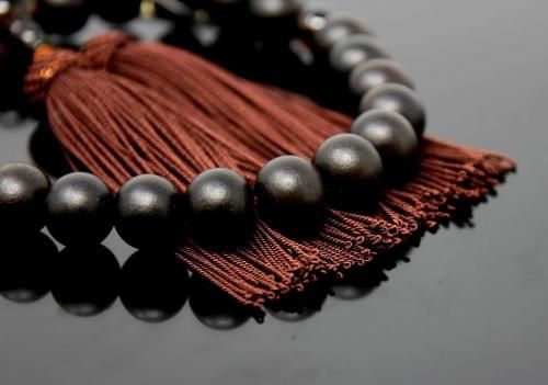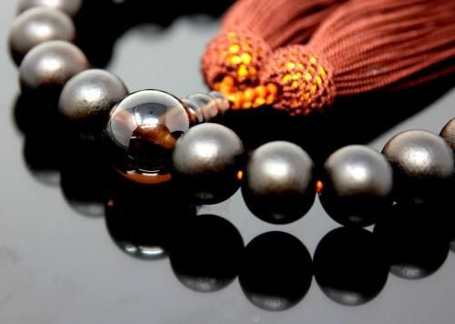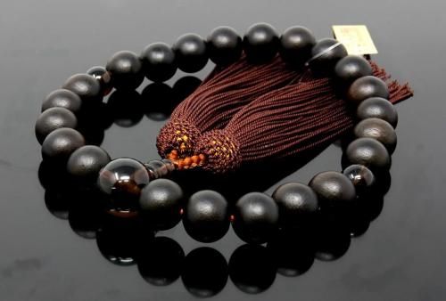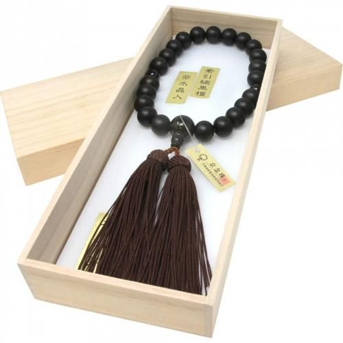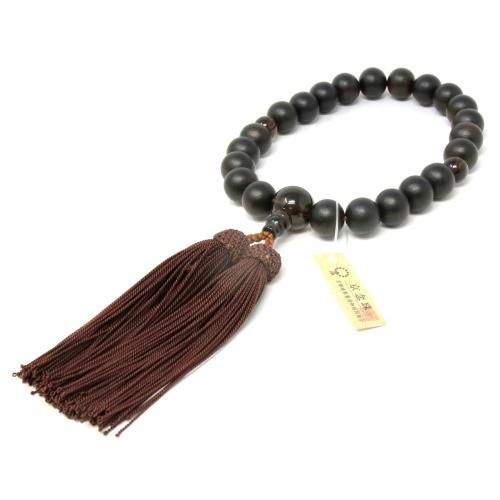 数珠 日本製 国産 男性用 念珠 片手 黒檀 茶水晶 22珠 正絹 頭付房 全宗派対応 数珠袋付 本絹