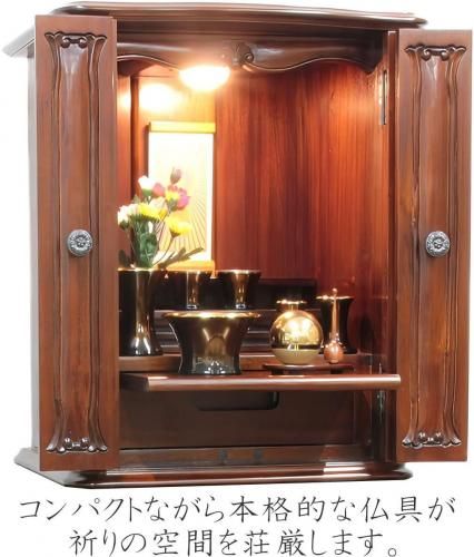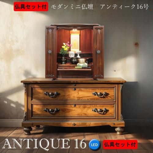 ミニ仏壇 仏具セット モダン アンティーク 16号 マホガニー ヴィンテージ LED おしゃれ 小さい 小型 家具調 仏具黒