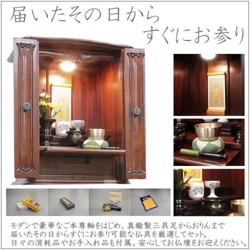 本欅製ミニ仏壇 モダン仏壇 仏具一式セット