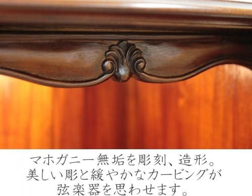 時を経るごとに美しさを増すマホガニーの無垢材を使用。深みのある赤褐色と気品あふれる艶。丈夫で精緻な彫刻も映える、世界が愛した高級木材です。