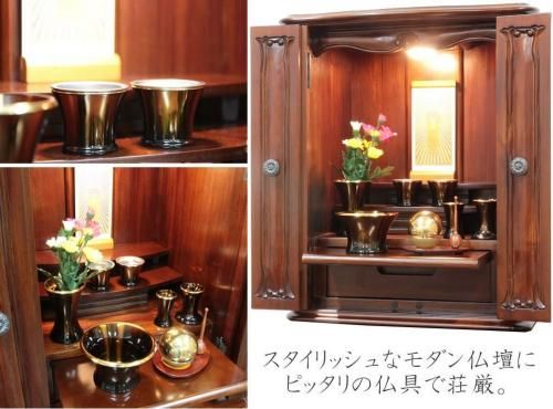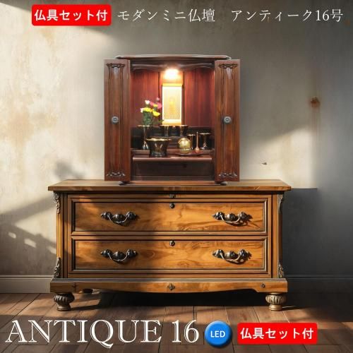 ミニ仏壇 仏具セット モダン アンティーク 16号 マホガニー ヴィンテージ LED おしゃれ 小さい 小型 家具調 仏具黒