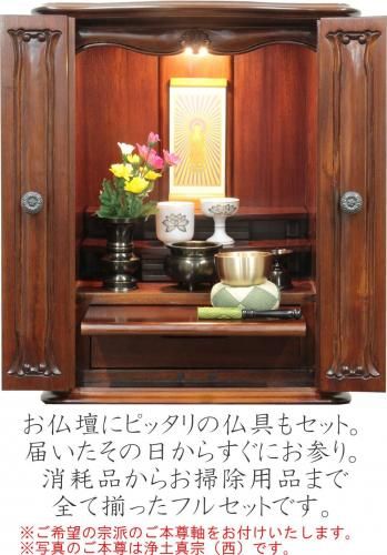 本欅製ミニ仏壇 モダン仏壇 仏具一式セット