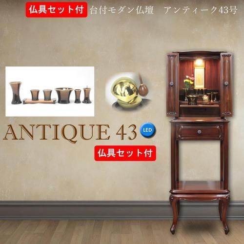 モダン仏壇 セット 仏具付 おしゃれ 台付き 家具調 アンティーク マホガニー LED ヴィンテージ リビング 洋室 和室 高128cm 仏具一式セット 配送 設置 無料