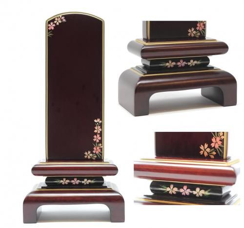 位牌 文字書入れ込み モダン位牌 国産 日本製 季 (とき) 桜 4.0寸 (高17.4cm) 会津塗 会津蒔絵 本金消粉蒔絵 手描き 漆塗 おしゃれ 本位牌