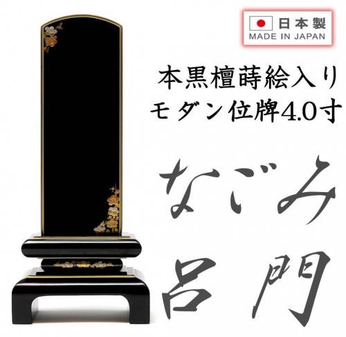 位牌 モダン位牌 なごみ呂門 黒檀 4.0寸 蒔絵入り 日本製 純国産品 文字入れ 文字入れ無料