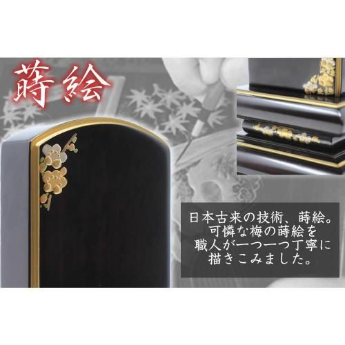 【蒔絵】日本古来の技術、蒔絵。可憐な梅の蒔絵を職人が一つ一つ丁寧に描きこみました。お位牌の一本一本に職人の魂がこもっています。