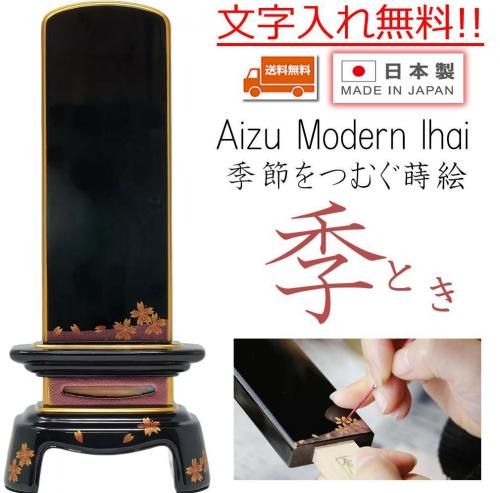 位牌 文字書入れ込み モダン位牌 国産 日本製 季 (とき) 桜 4.0寸 (高17.4cm) 会津塗 会津蒔絵 本金消粉蒔絵 手描き 漆塗 おしゃれ 本位牌