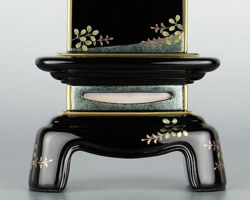 伝統とモダンの融合。会津塗、会津蒔絵をモダン位牌に施して。シンプルなデザインはどんなお仏壇にも映え、最高級のお位牌として故人を荘厳します。