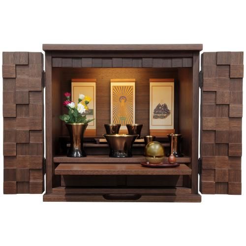 スライド式巻戸 くるみ 純日本製モダン ミニ仏壇
